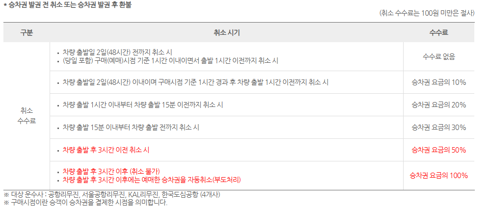 동서울터미널 예매, 조회 및 취소, 취소 수수료 안내