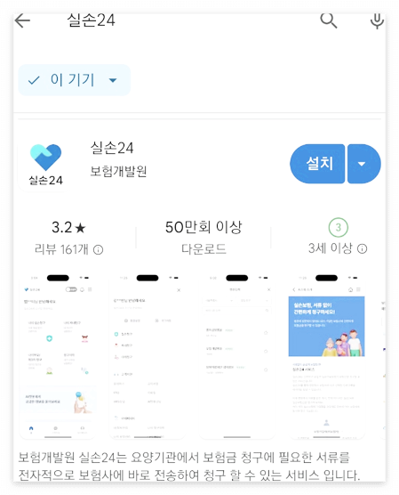 - 검색 결과에서 ‘실손24’ 앱을 찾아 클릭합니다. 앱 로고와 이름을 확인하여 공식 앱인지 확인하세요.